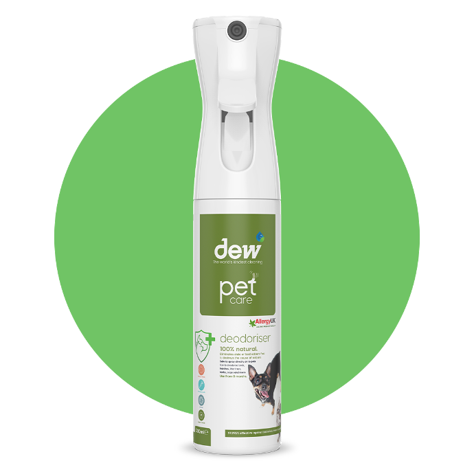 Dew Pet Deodoriser is a hypoallergenic anti-bac deodoriser that utilises electrolysed water, salt and science to deactivates the cause of stale, smelly pet odours by destroying the bacteria causing it.
