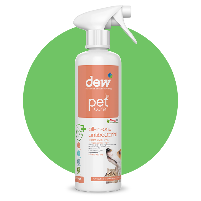 Dew Pet All-In-One Antibacterial kills 99.99% of bacteria and neutralises pet urine in seconds. Destroyer of stinky mess, the perfect carpet deodoriser, pet odour eliminator and enzymatic free cleaner for all surfaces. Our All-In-One Antibacterial is hypoallergenic, non-irritant and it’s vegan friendly too.